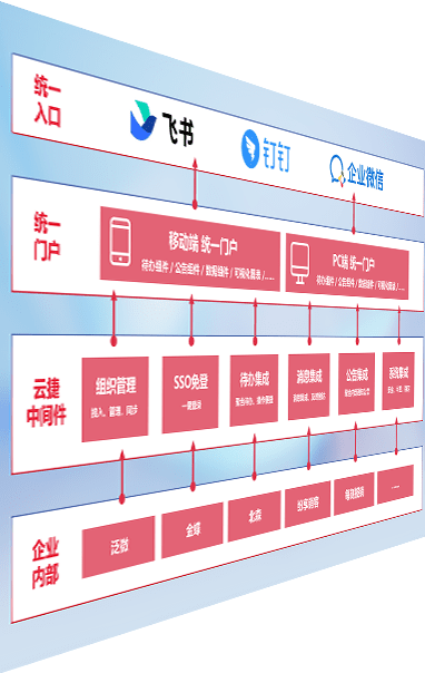 对协作平台提供支持服务,,,,支持企业应用与协作平台对接,,,,包含组织同步、、、、消息集成、、、、待办集成等。。。支持目前主流的协作平台:钉钉、、、企微和飞书。。